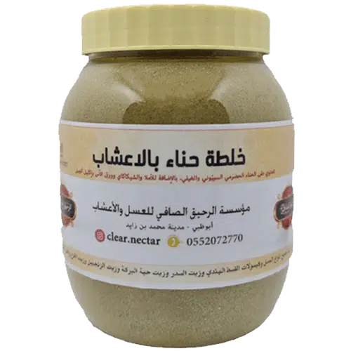 خلطة حناء بالأعشاب الطبيعية تساعد على تحفيز نمو الشعر وتزيد من كثافته، وتقلل من تساقط الشعر، تحتوي على الحناء الحضرمي السيئوني والغيلي، بالإضافة للأملا والشيكاكاي وورق الآس وإكليل الجبل.