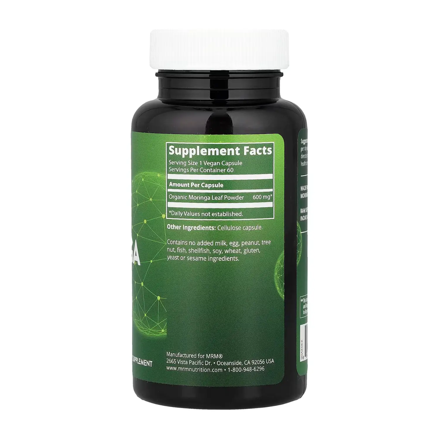 تحتوي كل كبسولة على 600 ملجم من مسحوق أوراق المورينجا.